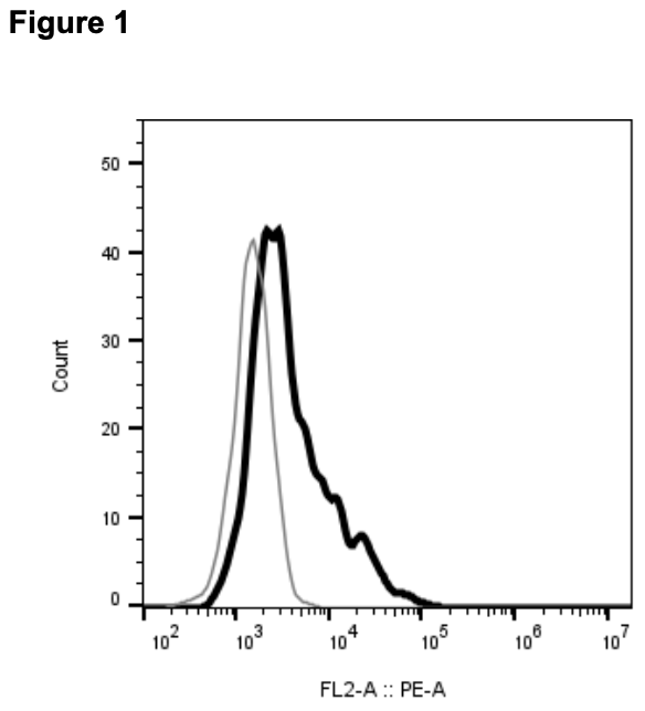 Figure 1. Receptor expression on cell surface measured by flow cytometry (FACS) using an anti-FLAG antibody. Thin line: parental cells; thick line: receptor-expressing cells.