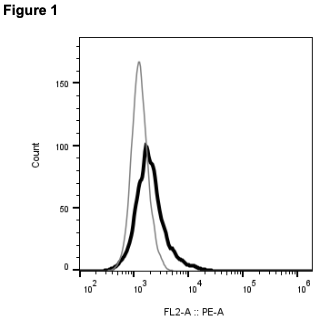 Figure 1. Receptor expression on cell surface measured by flow cytometry (FACS) using an anti-FLAG antibody. Thin line: parental cells; thick line: receptor-expressing cells.